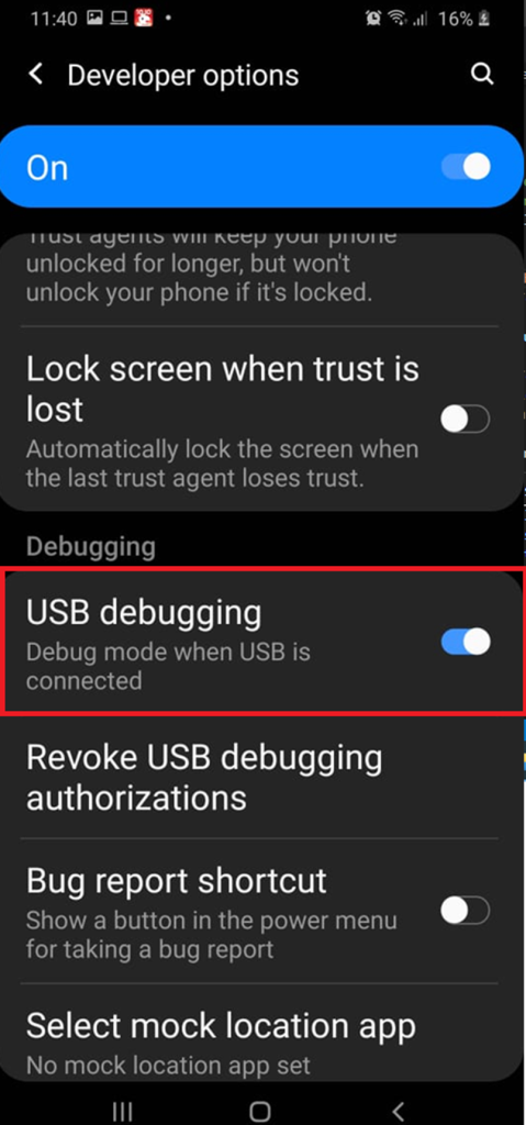 - Jika Opsi Pengembang sudah ada, aktifkan USB debugging dan Install via USB (jika ada)